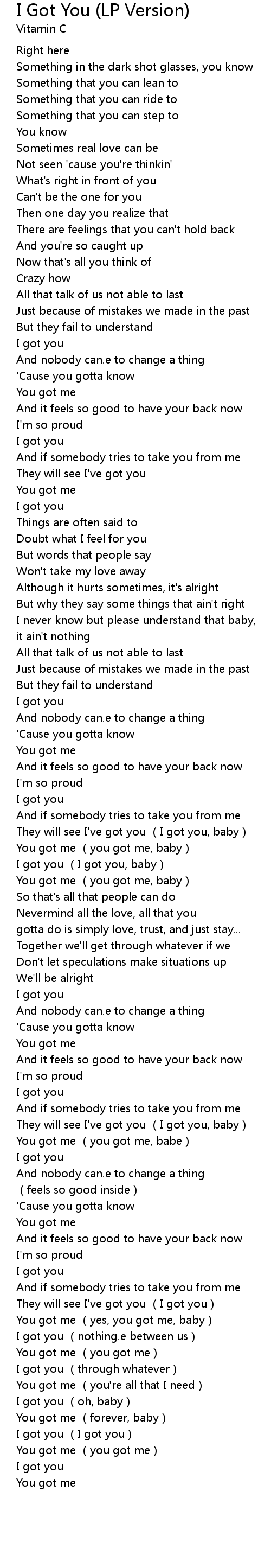 | [03:20.68] | You got me (yes, you got me, baby) |