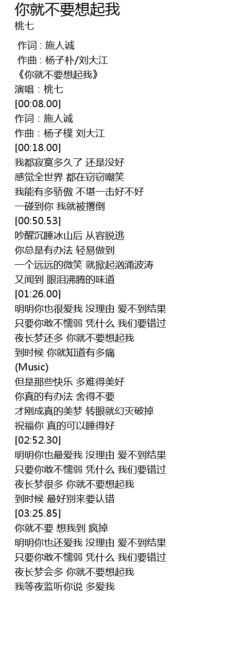 | [03:10.64] | 夜长梦很多 你就不要想起我 |