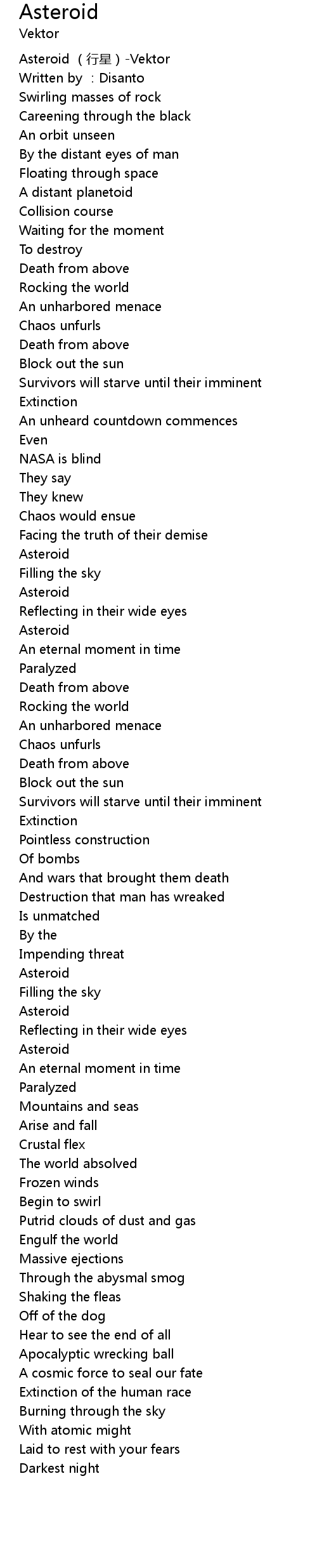 | [00:00.00] | Asteroid (行星)-Vektor |