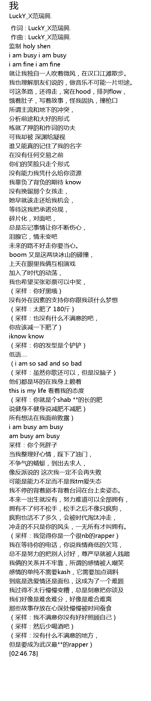 | [02:05.19] | (采样:我觉得你是一个很nb的rapper) |