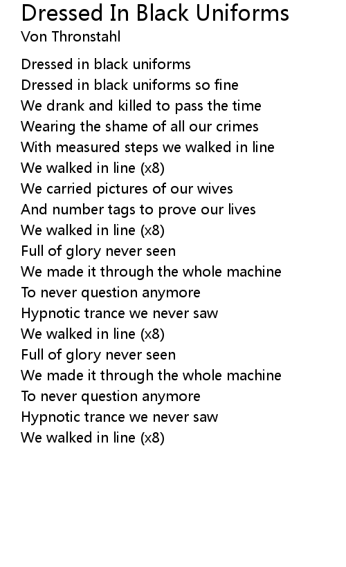 Dressed in black uniforms so fine |