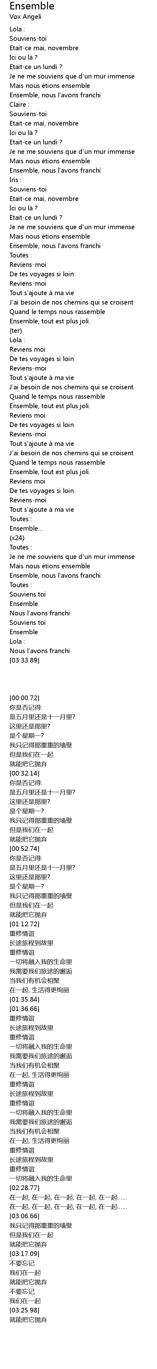 | [03:14.18] | Ensemble, nous l'avons franchi |