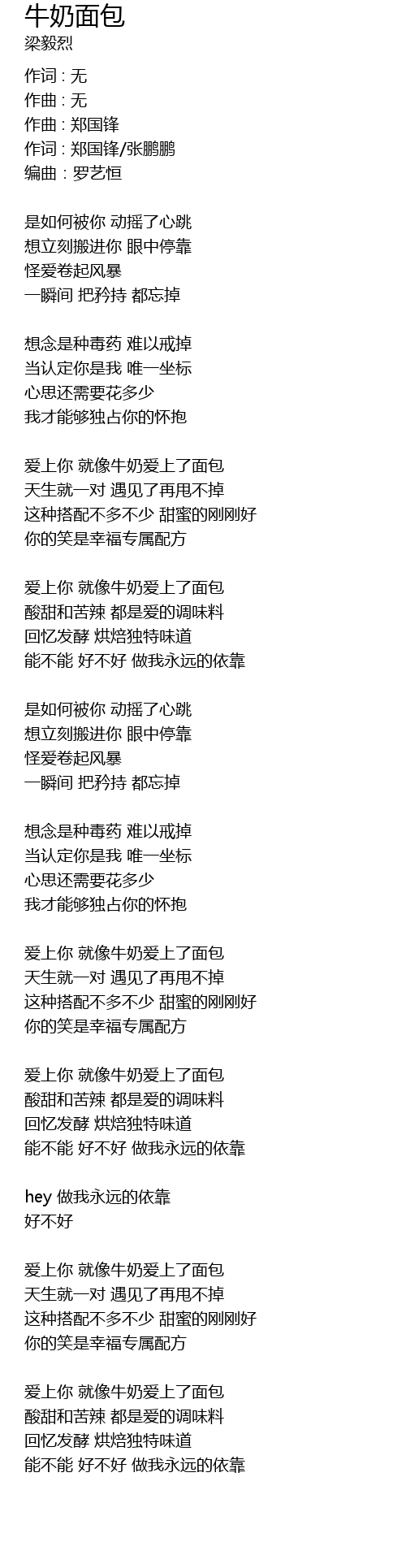 | 爱上你 就像牛奶爱上了面包 | |