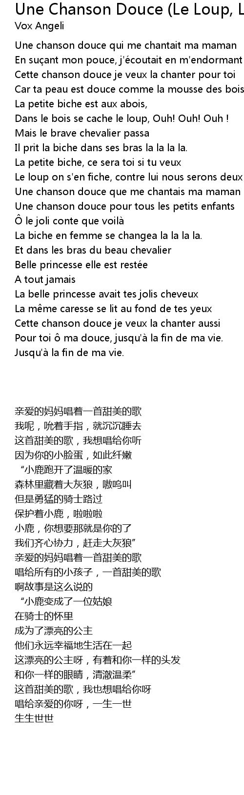 | Song | Une Chanson Douce (Le Loup, La Biche Et Le Chevalier) |