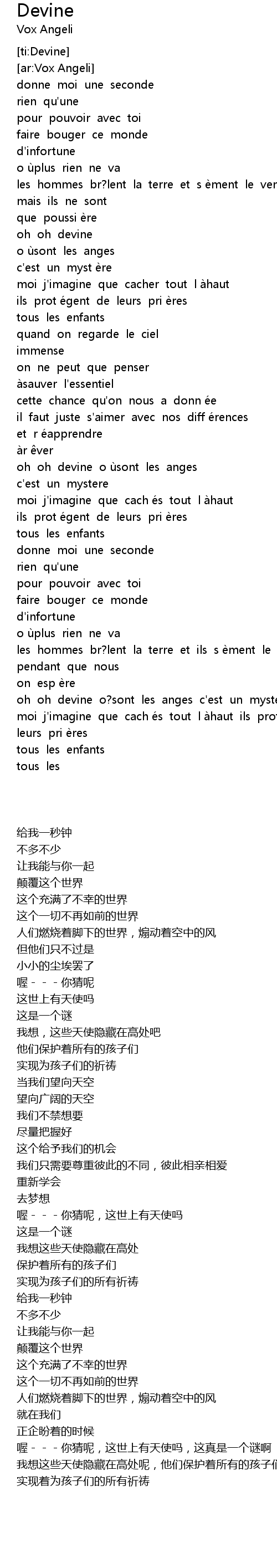| [01:34.34] | oh oh devine o u sont les anges |