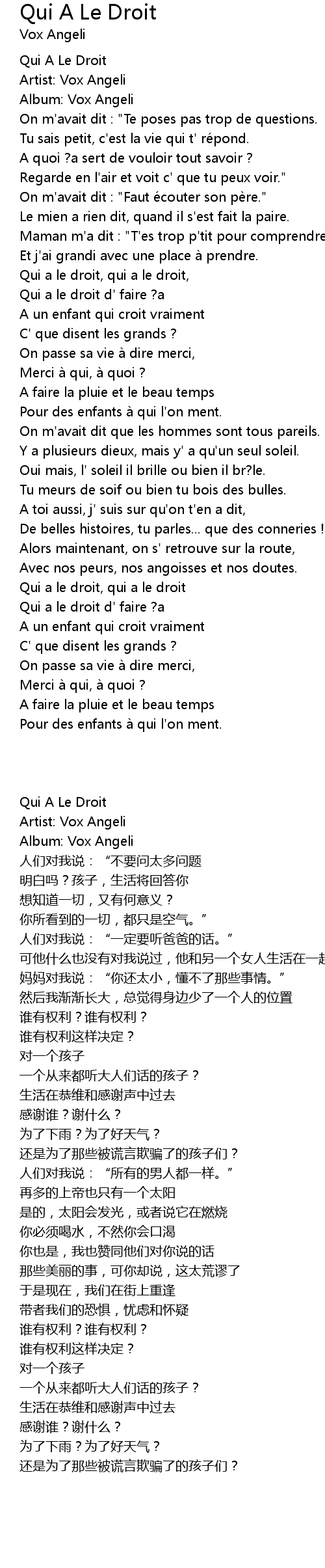 | [02:44.54] | Qui a le droit, qui a le droit |