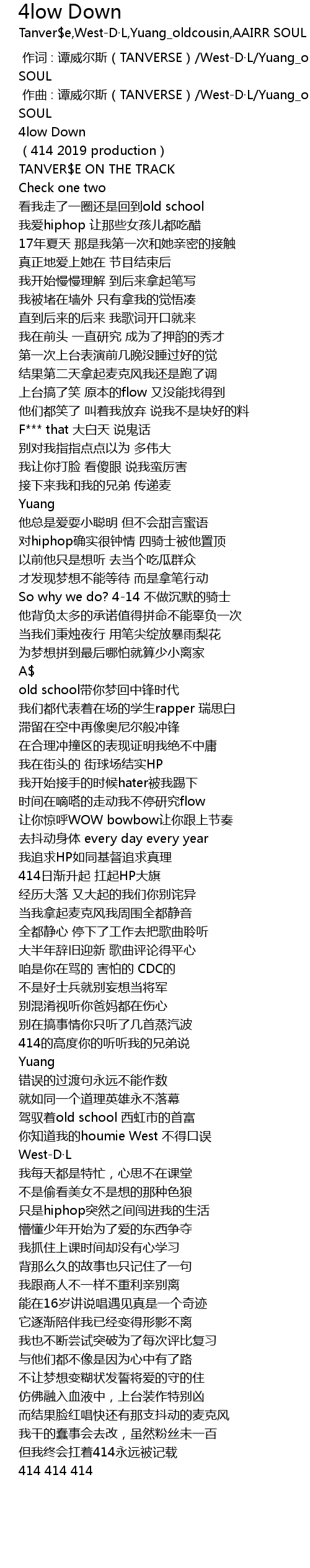 | [00:00.000] | 作词 : 谭威尔斯(TANVERSE)/West-D·L/Yuang_oldcousin/AAIRR SOUL |