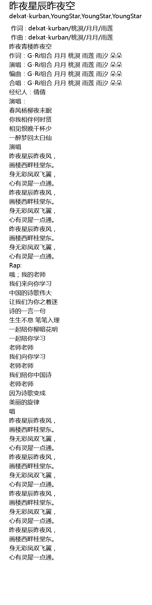 | [00:17.185] | 合唱:G-Ri组合 月月 桃溟 雨莲 雨汐 朵朵 |