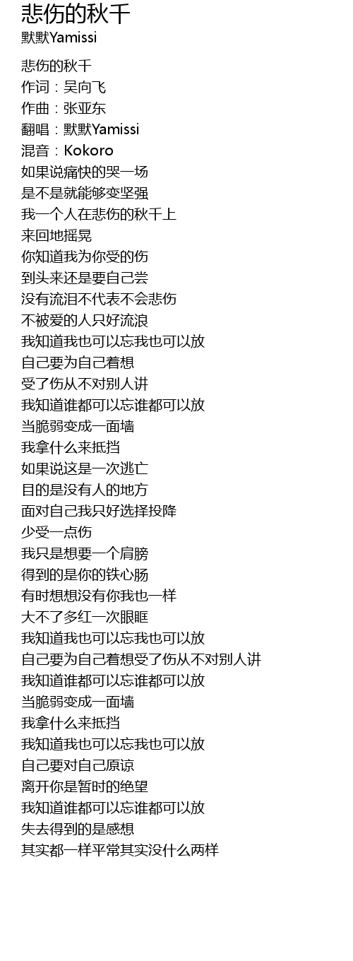 | [00:02.445] | 悲伤的秋千 |