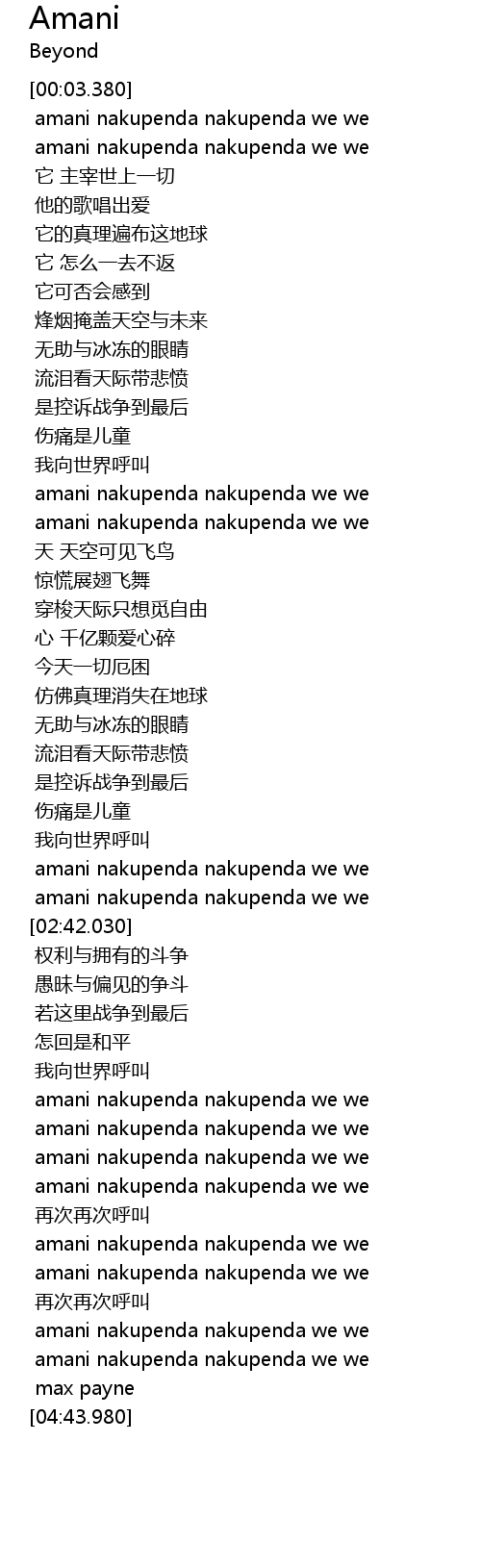 | [04:23.280] | amani nakupenda nakupenda we we |