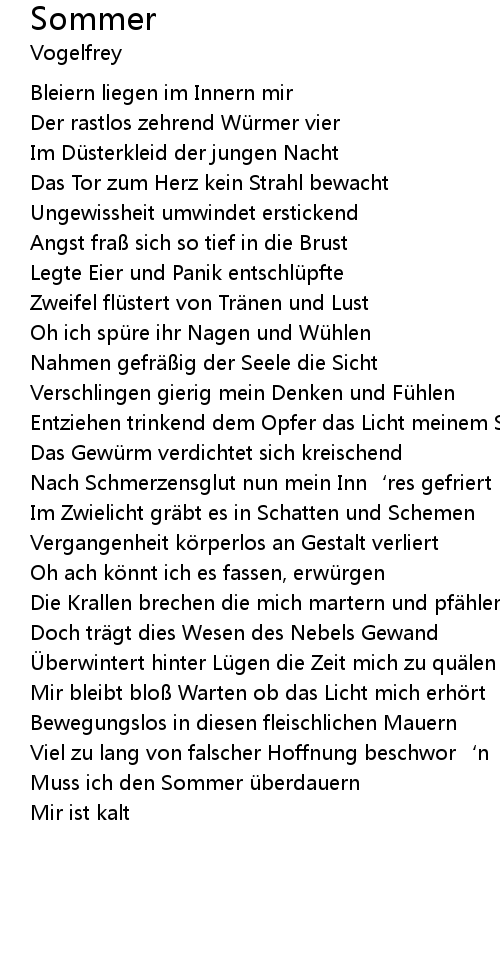 | Muss ich den Sommer ü berdauern | |