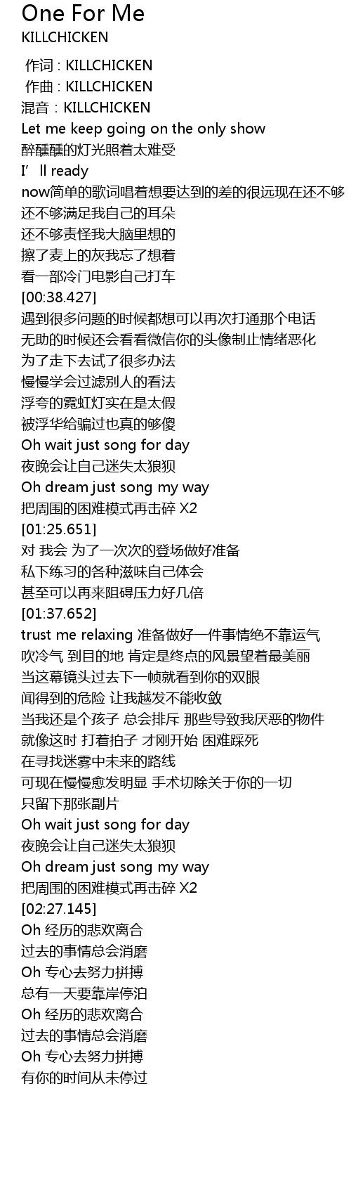 | [00:00.000] | 作词 : KILLCHICKEN |