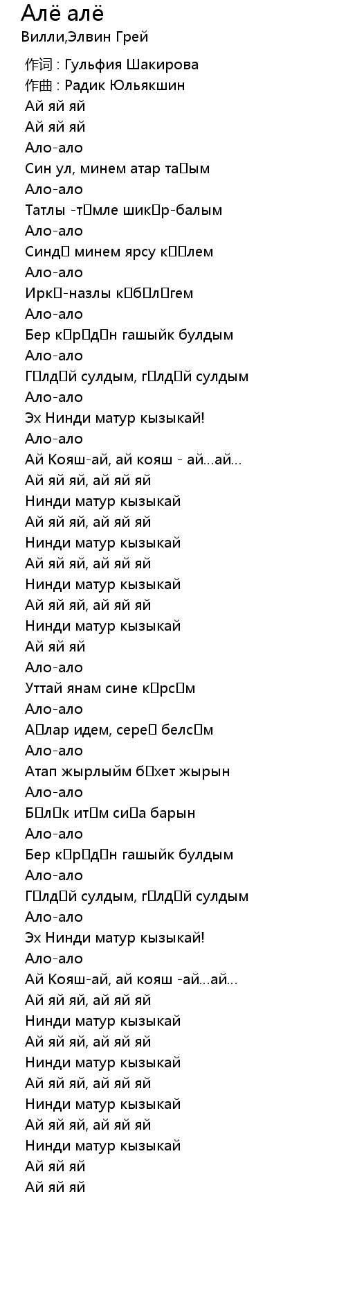 作词 : Гульфия Шакирова |