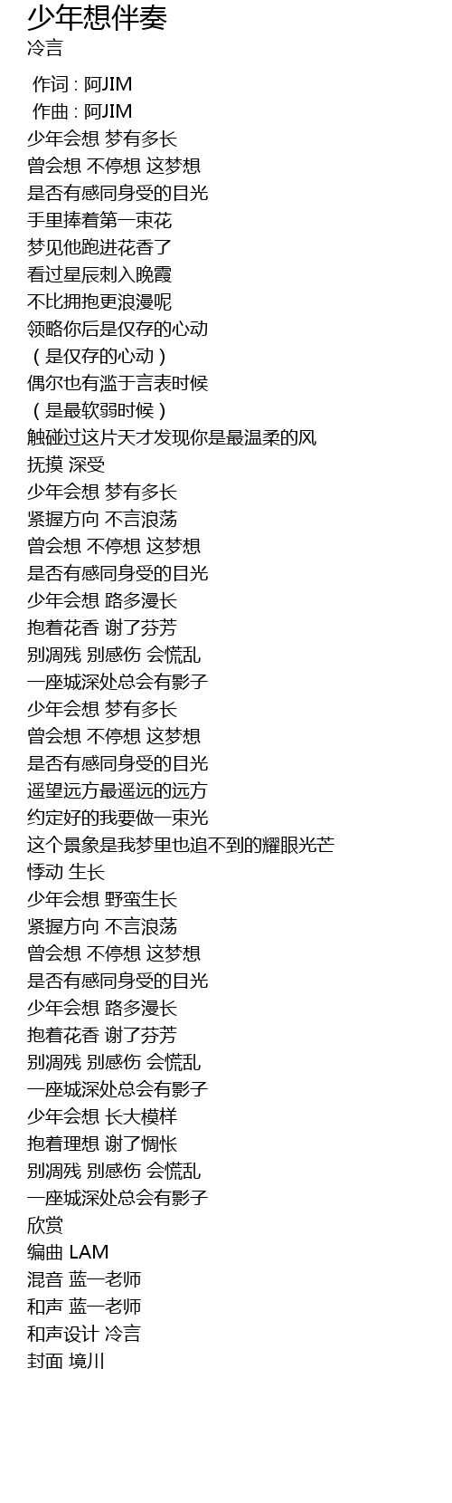 少年想伴奏 shao nian xiang ban zou Lyrics