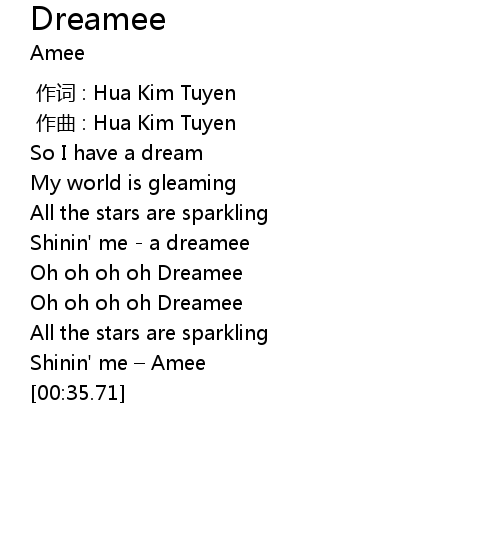 | [00:16.90] | Oh oh oh oh Dreamee |
