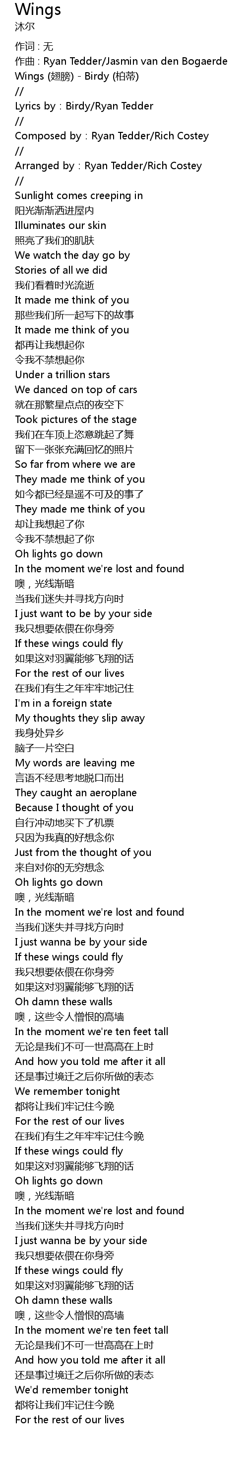 | Wings (翅膀) - Birdy (柏蒂) | |