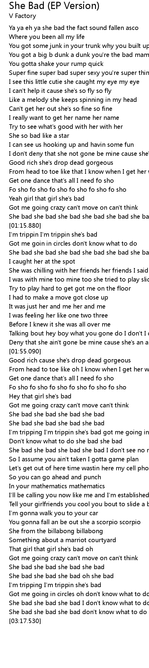 [01:22.610] She bad she bad she bad she bad she bad she bad
