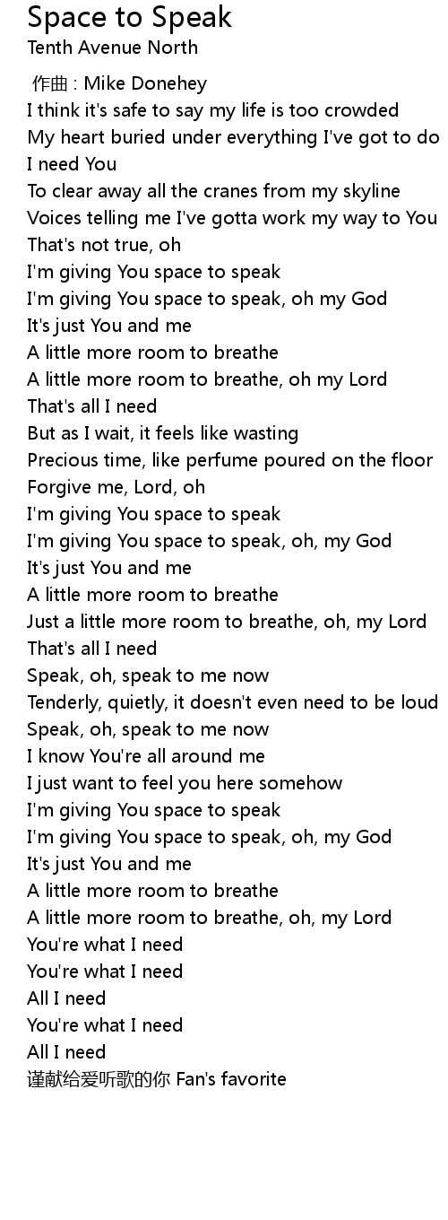 | [01:14:000] | A little more room to breathe, oh my Lord |