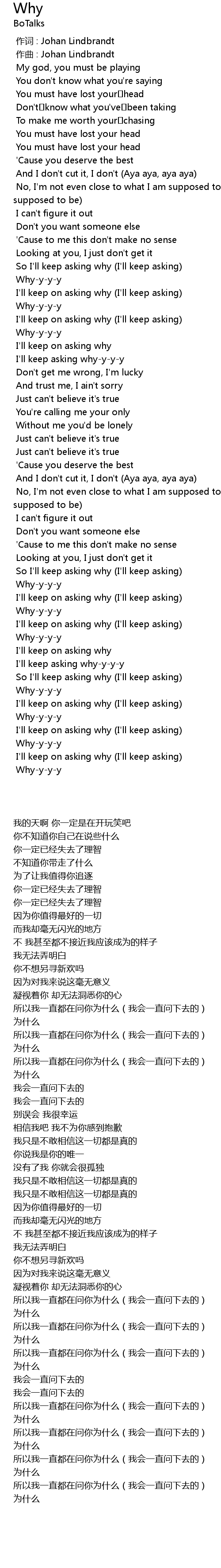 | [02:45.538] | So I' ll keep asking why I' ll keep asking |