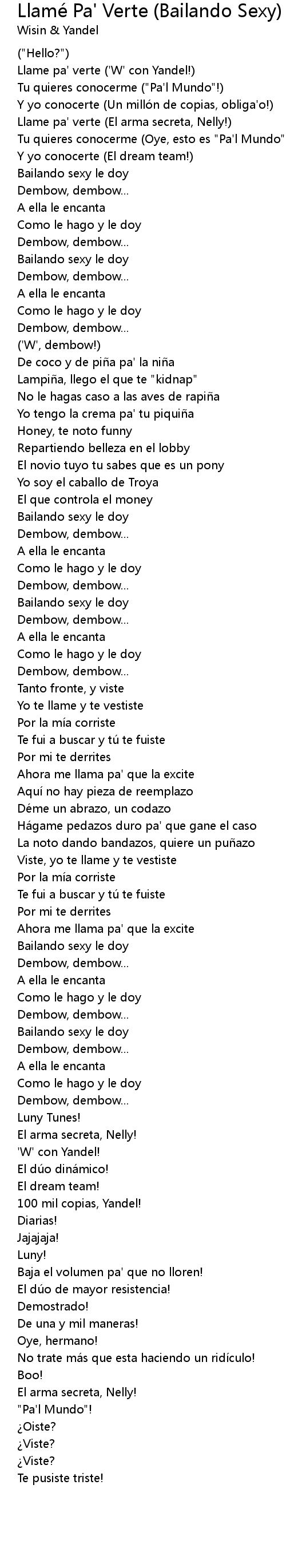 | Song | Llamé Pa' Verte (Bailando Sexy) |