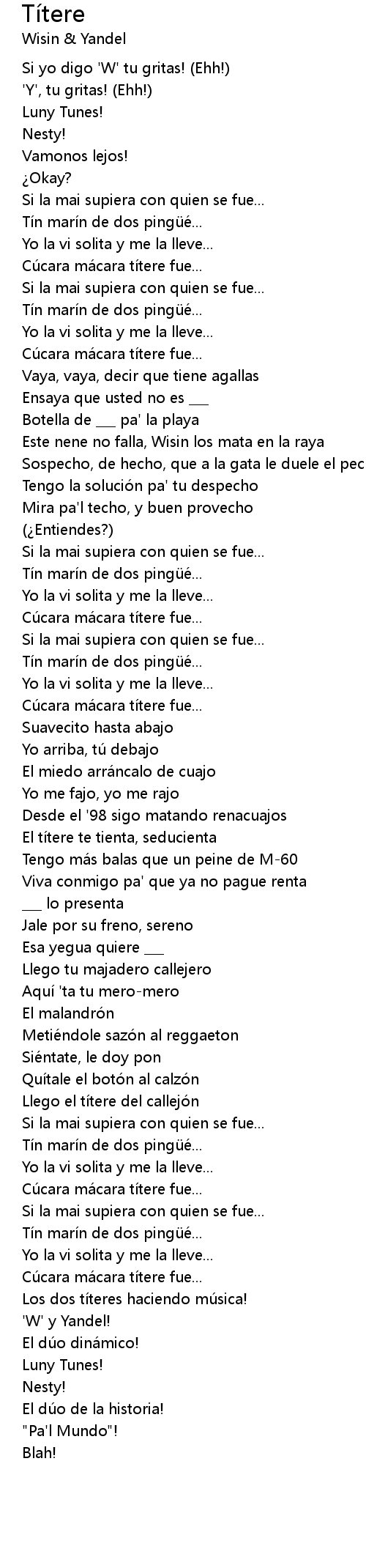 | Si yo digo ' W' tu gritas! Ehh! | |