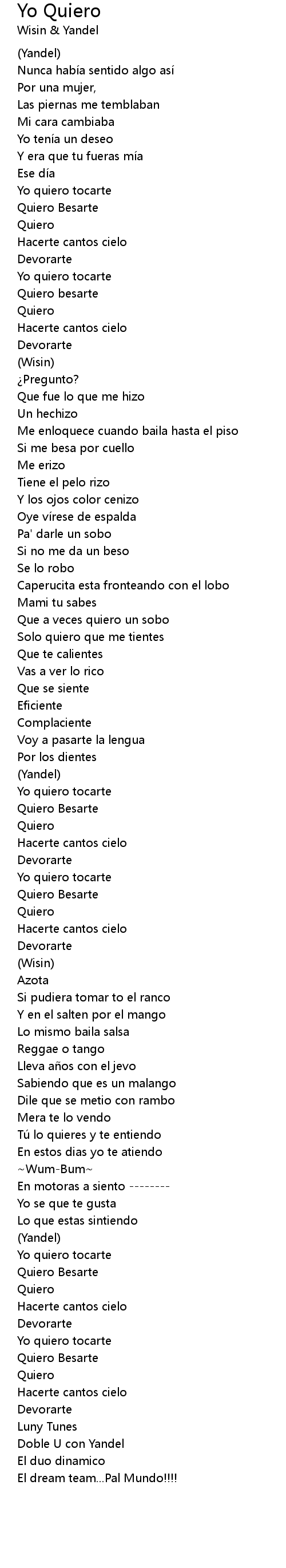 | Song | Yo Quiero |