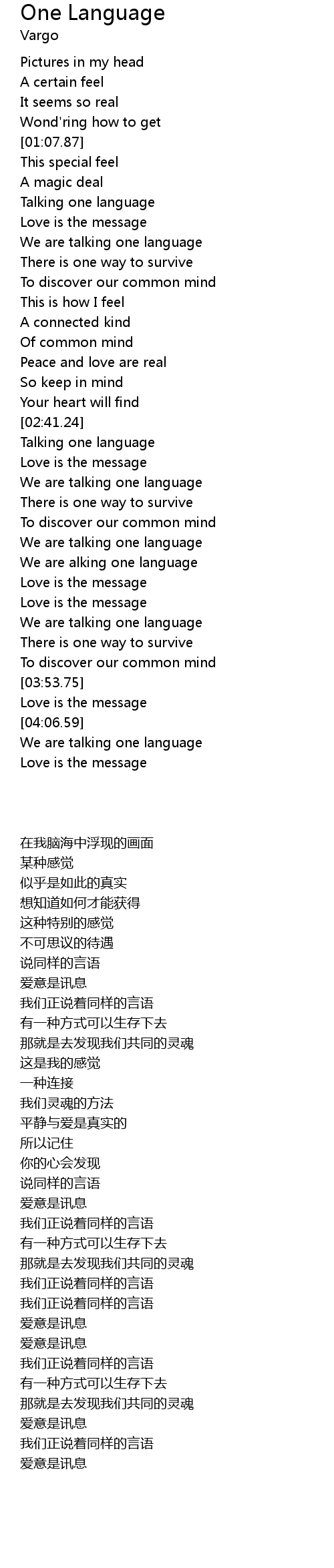 | [03:11.04] | Love is the message |