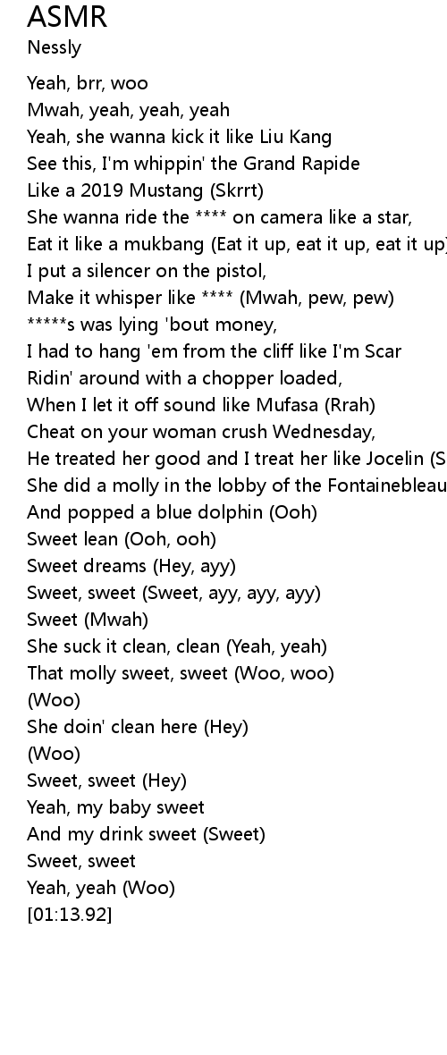 | [00:27.35] | Make it whisper like **** (Mwah, pew, pew) |