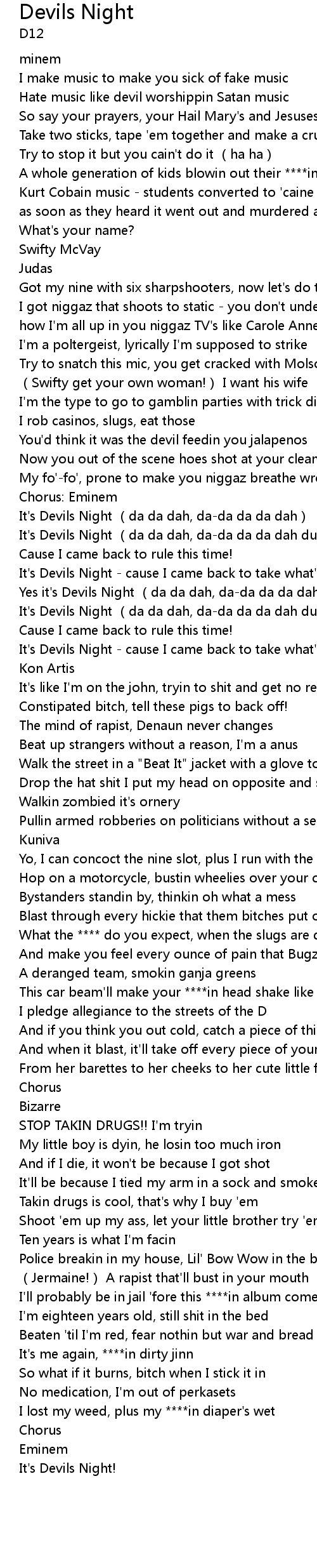 | [01:32.24] | It's Devils Night (da da dah, da-da da da dah duh da) |