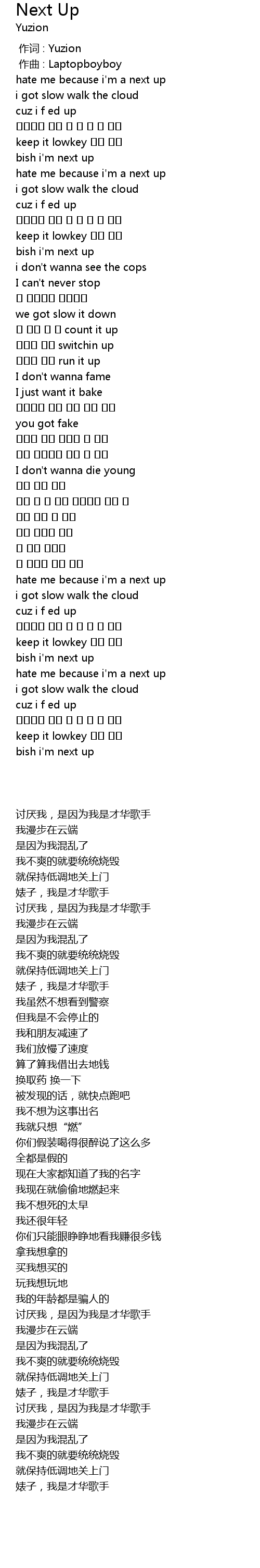 | [01:29.447] | hate me because i' m a next up |