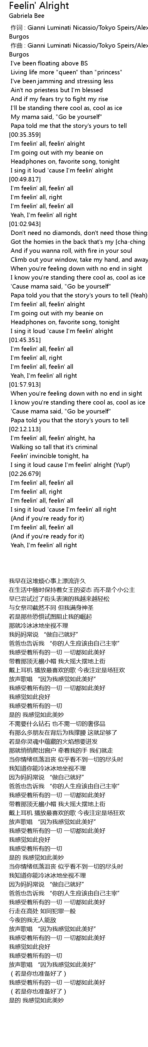 | [00:36.221] | I' m feelin' all, feelin' alright |