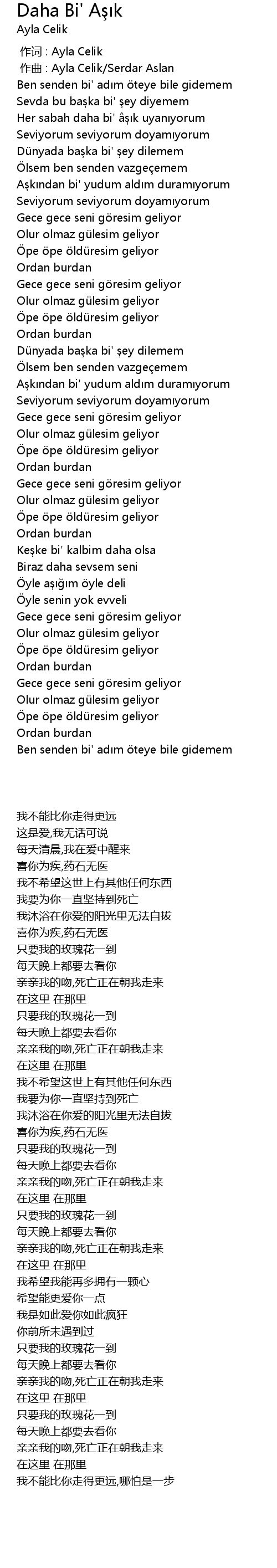 | [00:01.00] | 作曲 : Ayla Celik/Serdar Aslan |