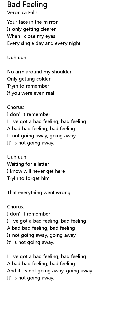 | A bad bad feeling, bad feeling | |