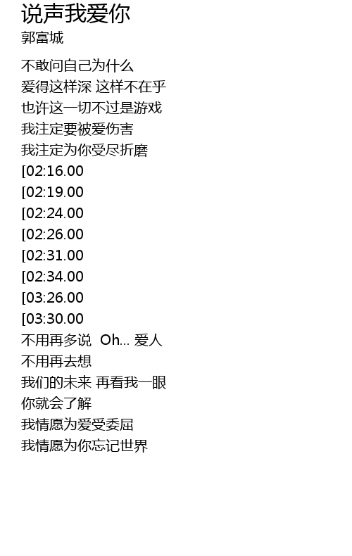 | [03:03.00][02:16.00][00:55.00] | 说声我爱你 |