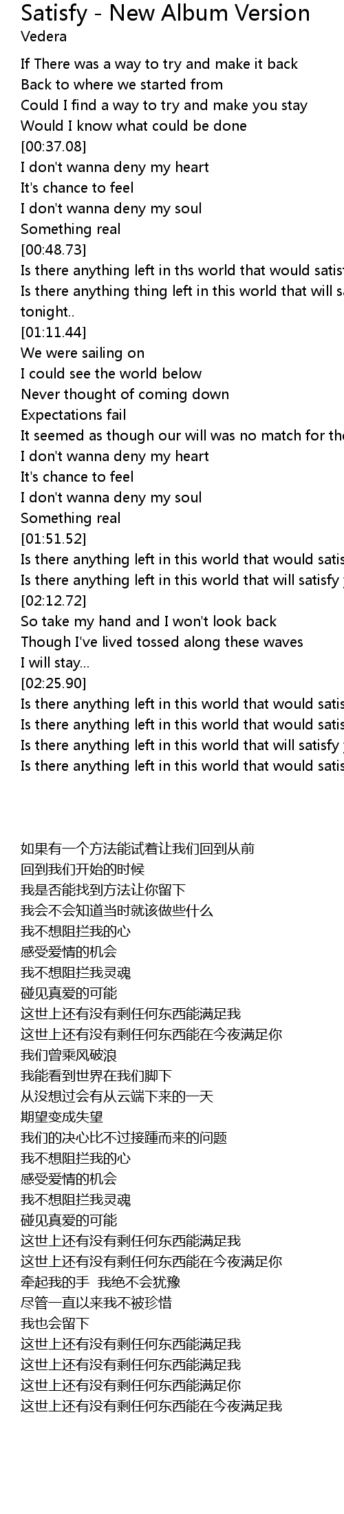 | [01:51.89] | Is there anything left in this world that would satisy me, ohh... |