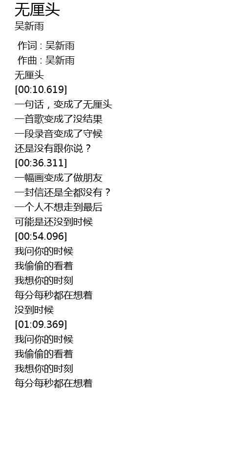 | [00:00.000] | 作词 : 吴新雨 |