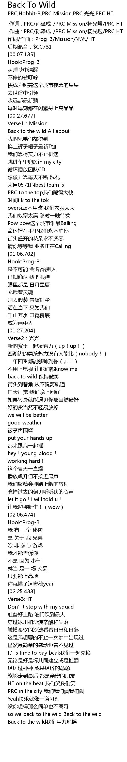| [01:38.367] | back to wild bǎo chí wēi xiào |