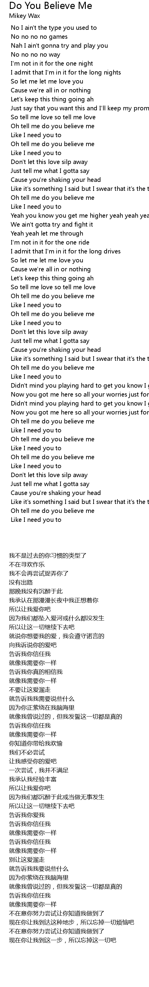 Oh tell me do you believe me |