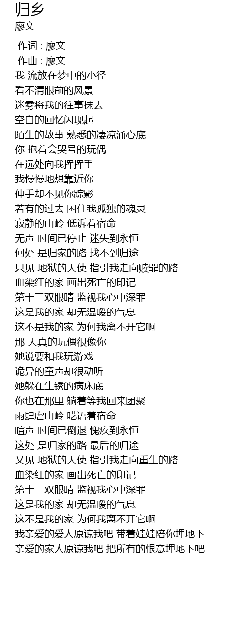 | [05:32.675] | 我亲爱的爱人原谅我吧 带着娃娃陪你埋地下 |