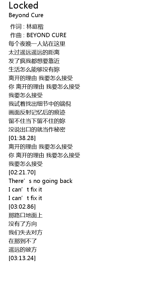 | [00:01.00] | zuò qǔ : BEYOND CURE |