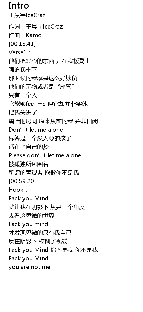 | [01:16.25] | Fack you Mind 你不是我 你不是我 |
