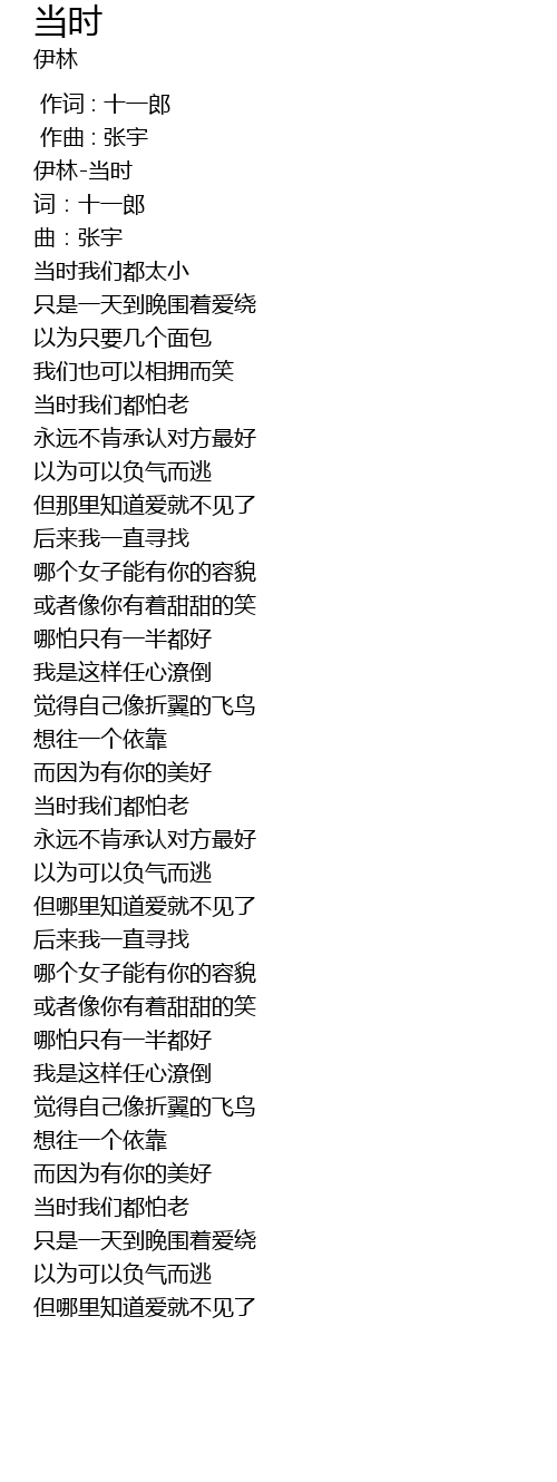 | [00:00.00] | 伊林-当时 |