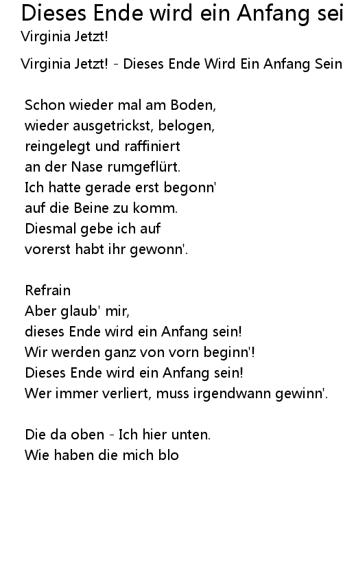 | Song | Dieses Ende wird ein Anfang sein |
