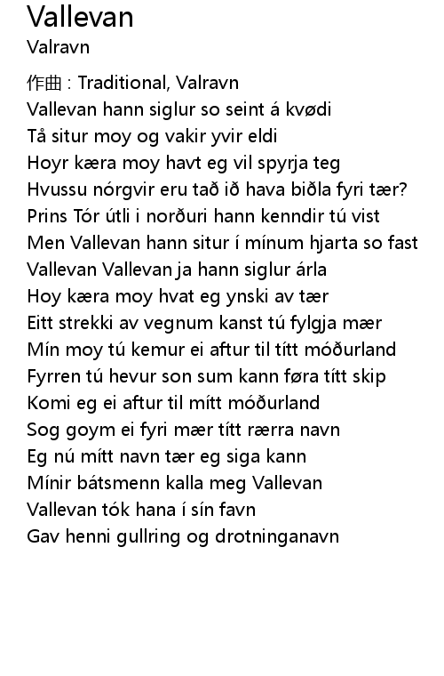 | Men Vallevan hann situr i mi num hjarta so fast | |