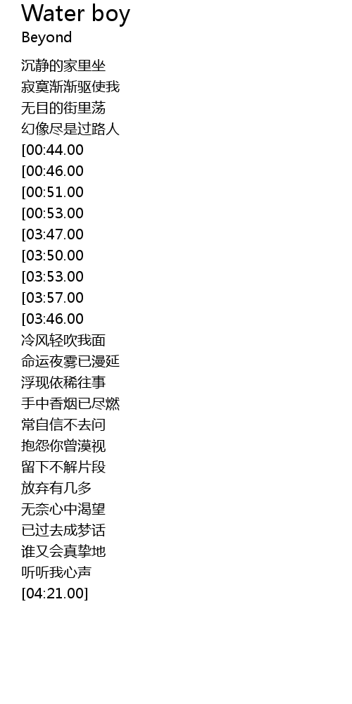 | [04:06.00][03:53.00][03:38.00][03:25.00][02:18.00][02:04.00][01:07.00] | qī hēi zhōng tā zuò bàn |