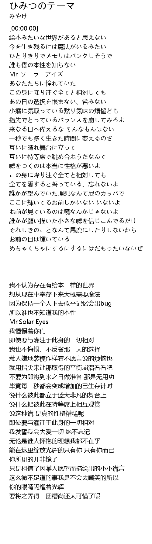 | [00:32.81] | Mr. ソーラーアイズ |