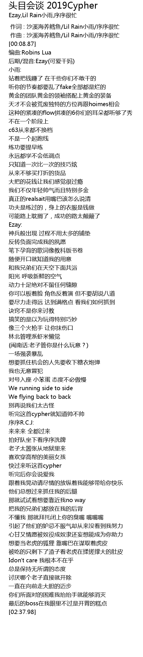 | [01:42.44] | 听完这首cypher就知道帅不帅 |