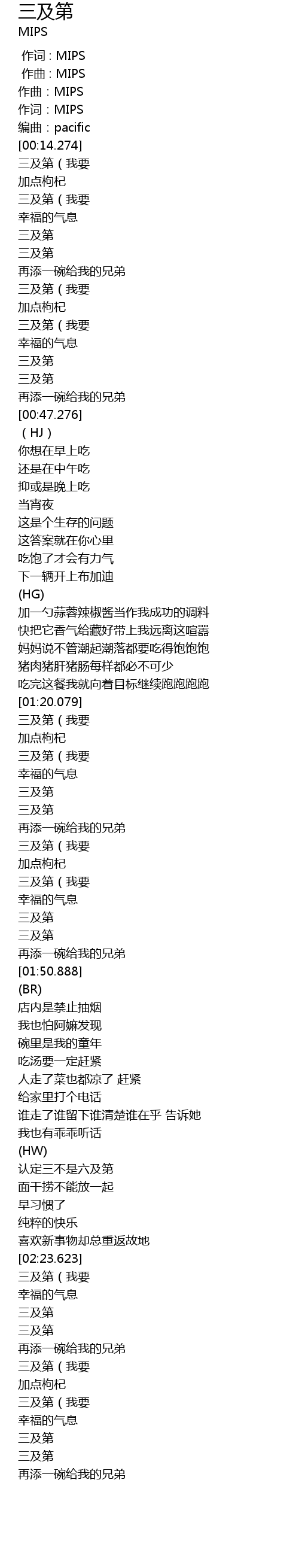 | [02:51.474] | 再添一碗给我的兄弟 |