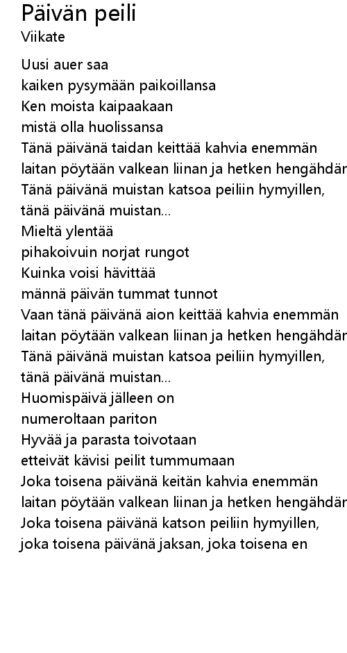 | Joka toisena p iv n katson peiliin hymyillen, | |