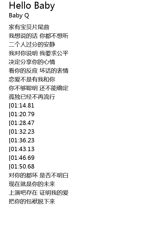 | [02:54.07][01:28.47] | Baby 我也想正在伤害了畏避 |